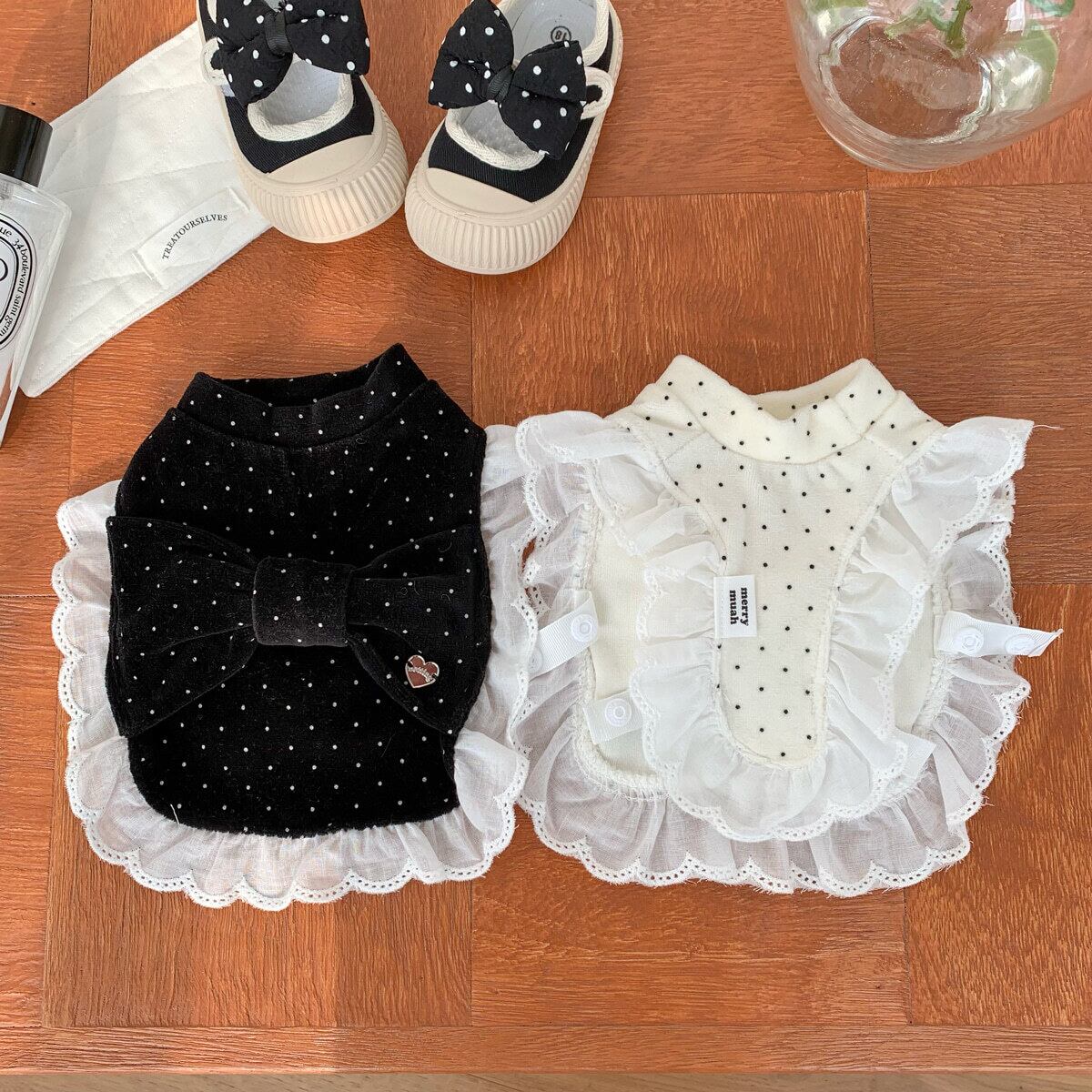 【即納】〔merry muah〕Big Ribbon Dot Velour Poncho (全2色)