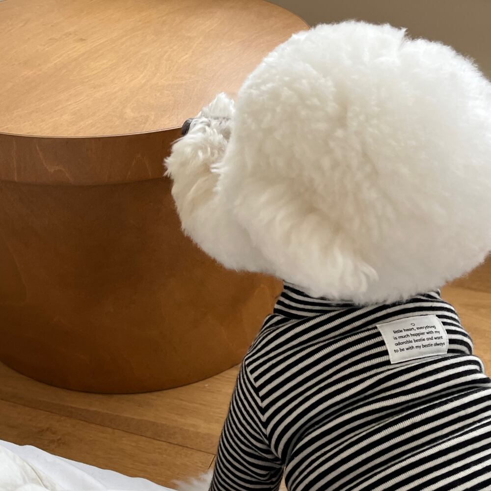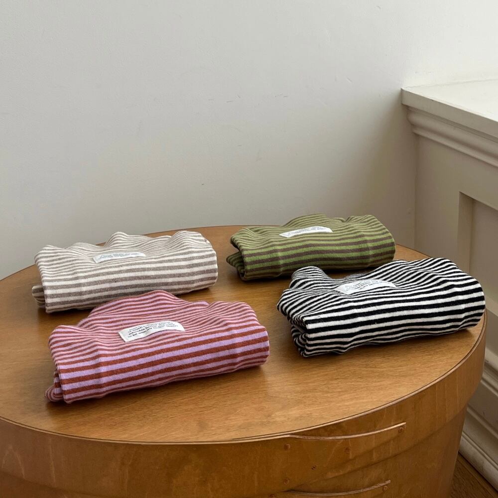 【即納】〔Little Heart〕Everyday Striped Fleece Turtleneck (全4色)