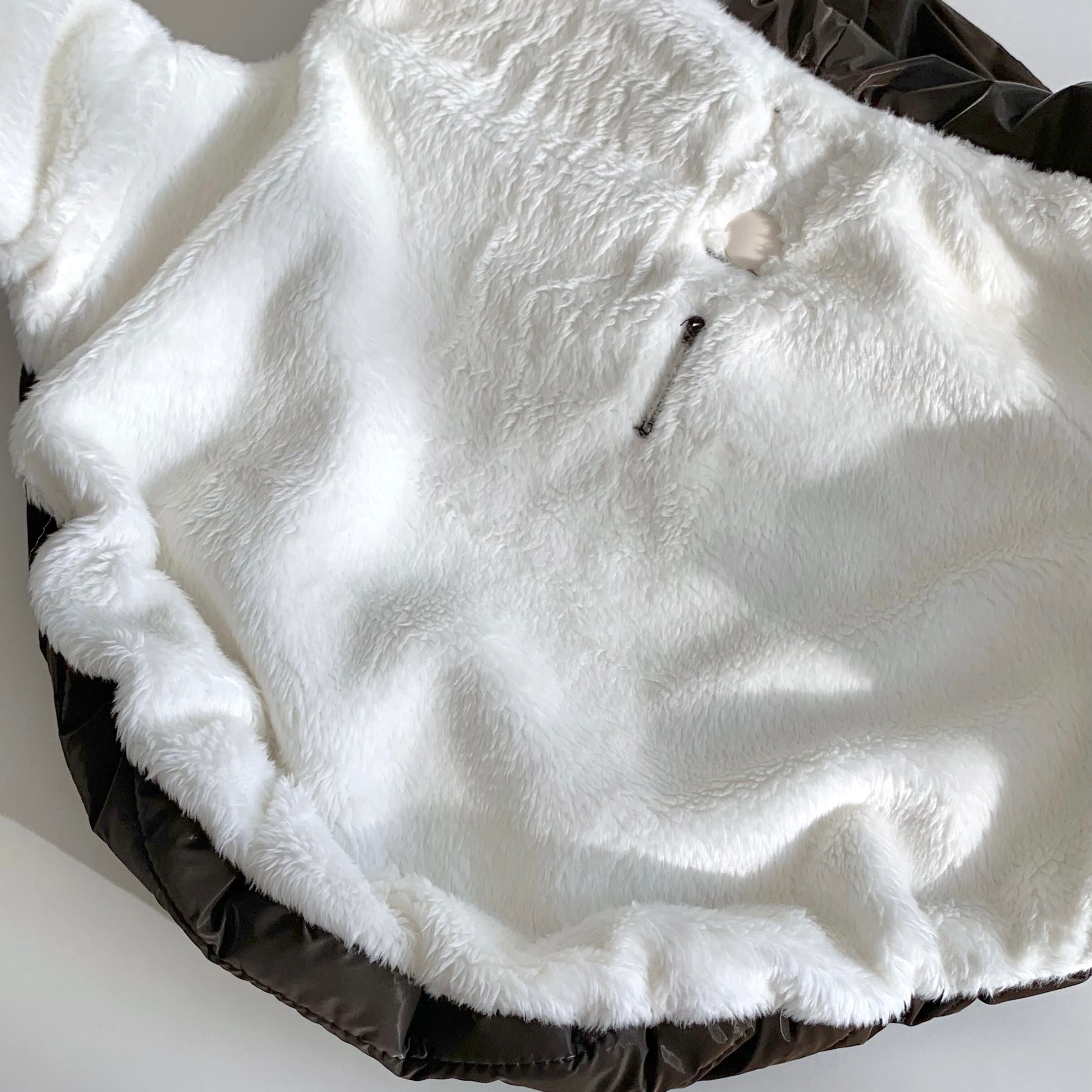 表地は生活防水加工を施したナイロン100%、裏地にはやわらかな起毛素材を使用して製作しました。