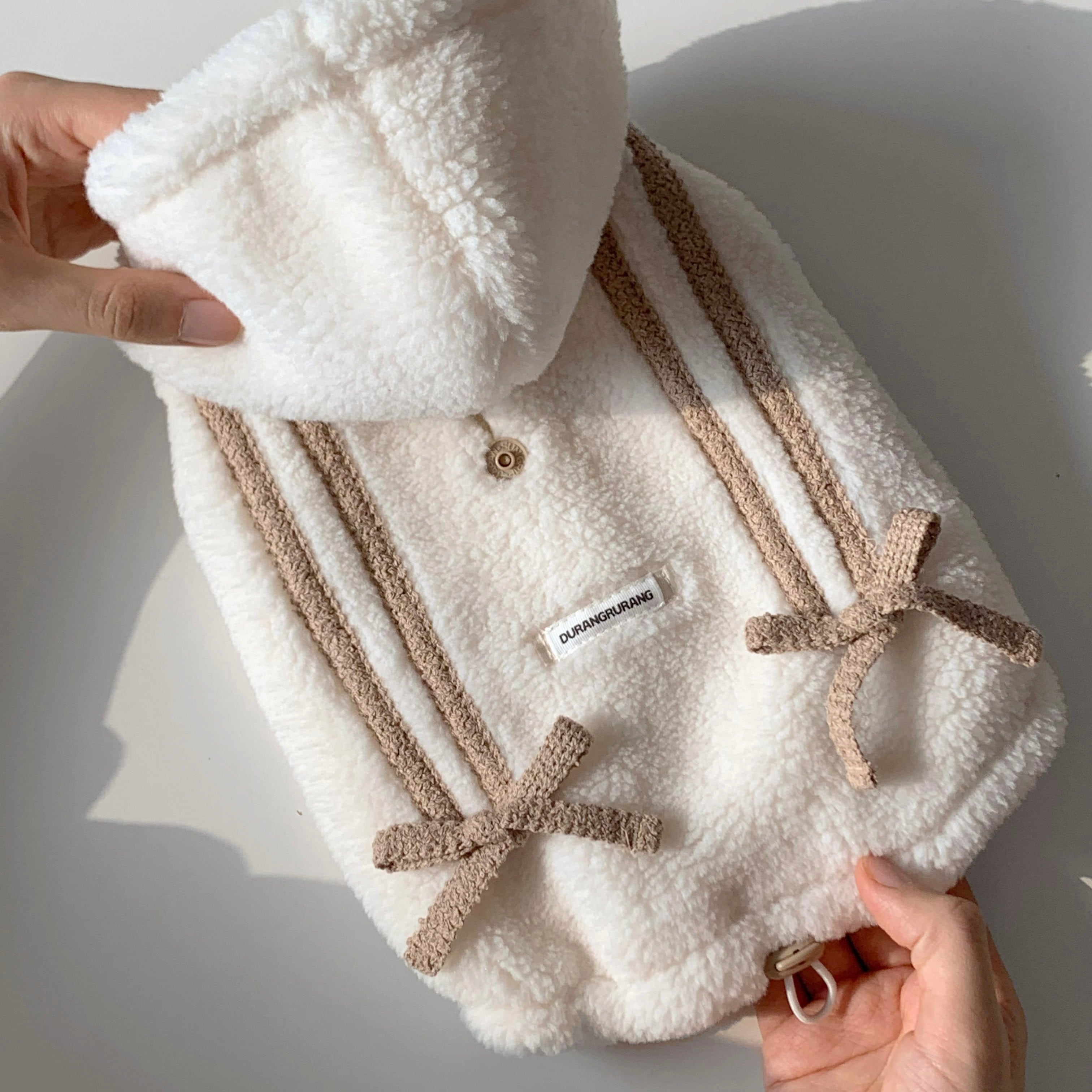韓国生産の高級ボアフリースに、内側はやさしい肌触りのソフトファーを使用し、
