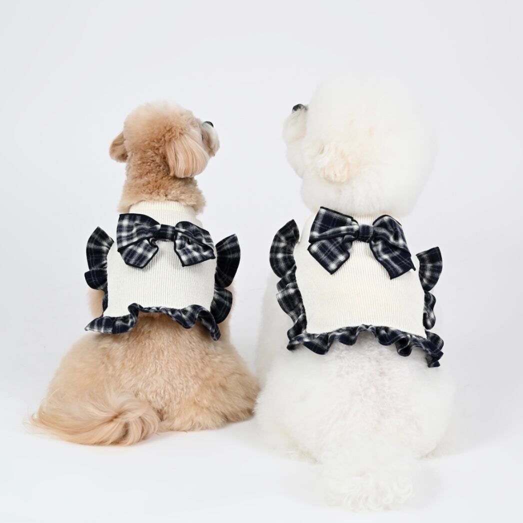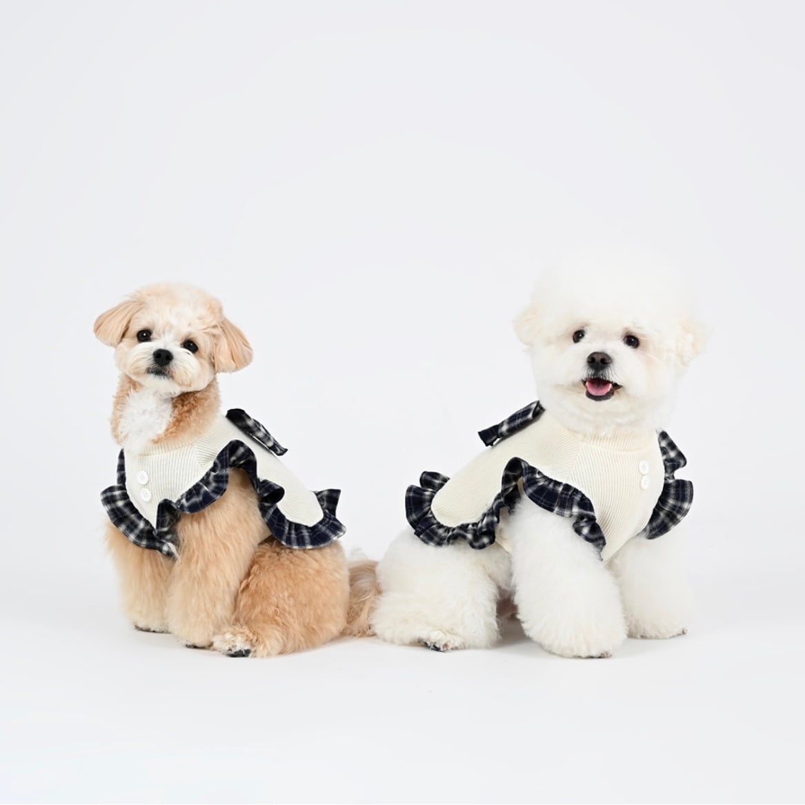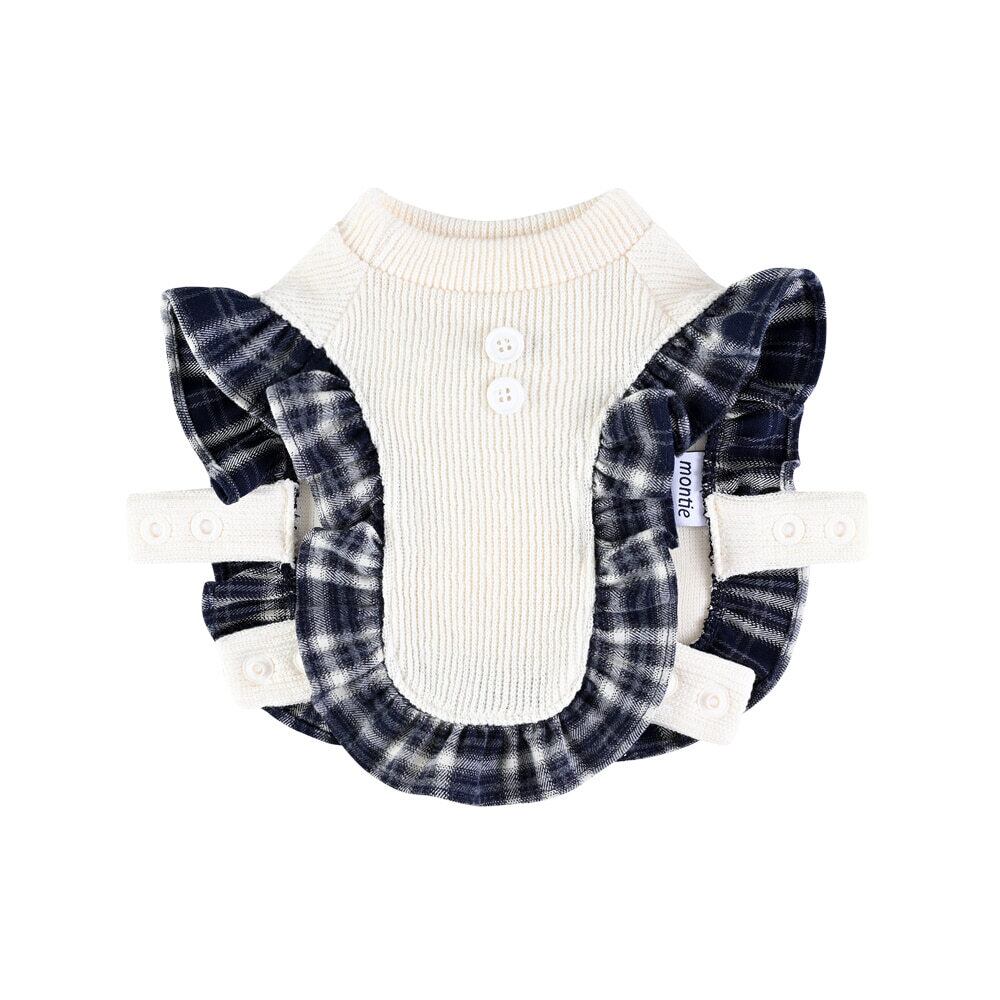 あたたかみのあるニットボディに、チェックフリルをプラスした、やさしい雰囲気のアイテムです。