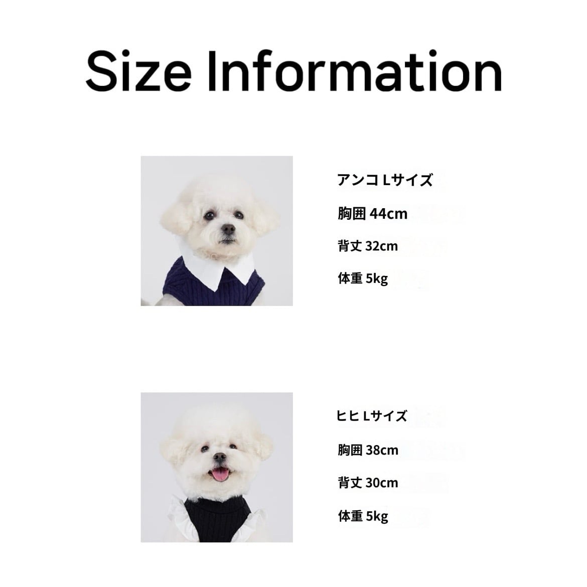 L:首回り34cm / 胸囲48~52cm / 着丈28cm