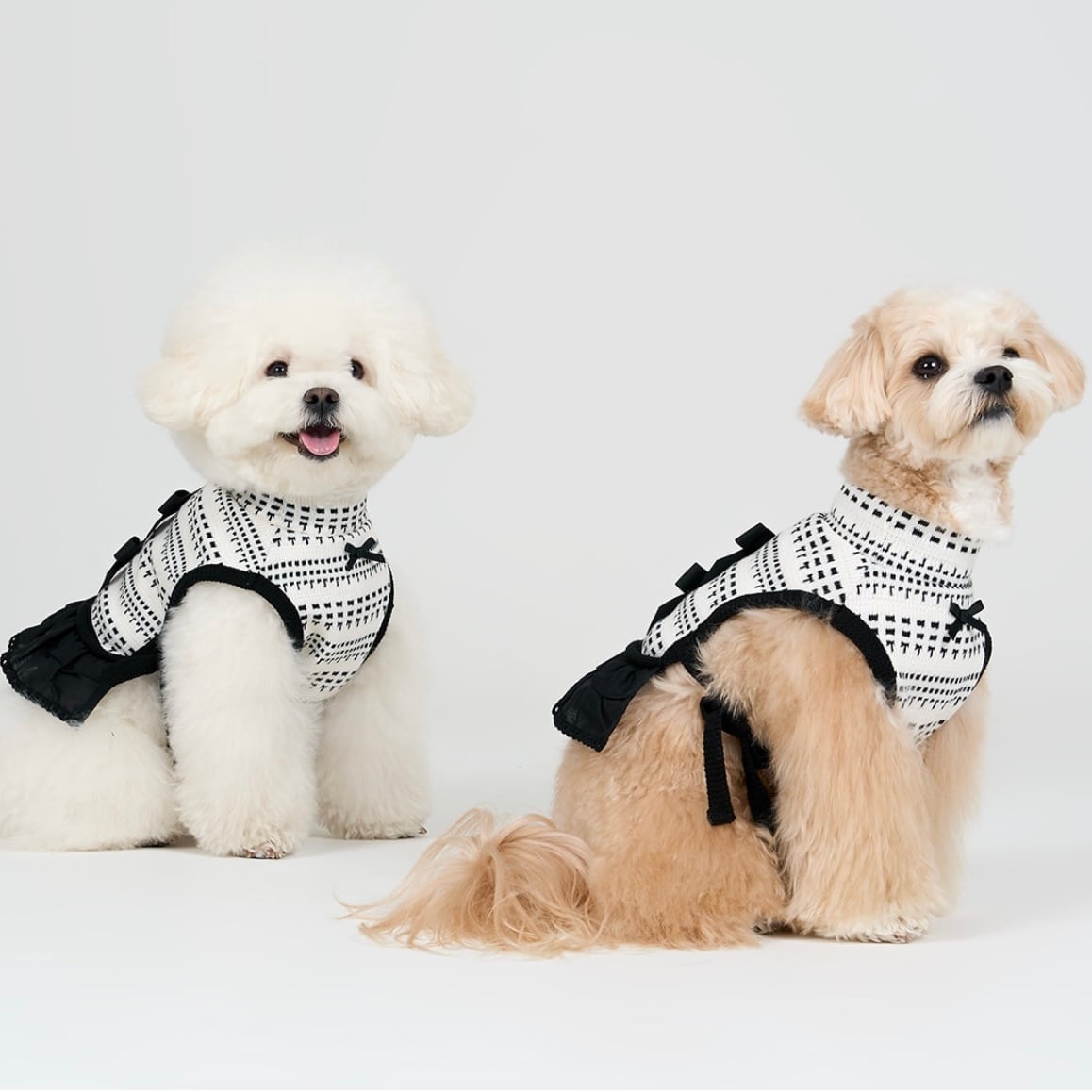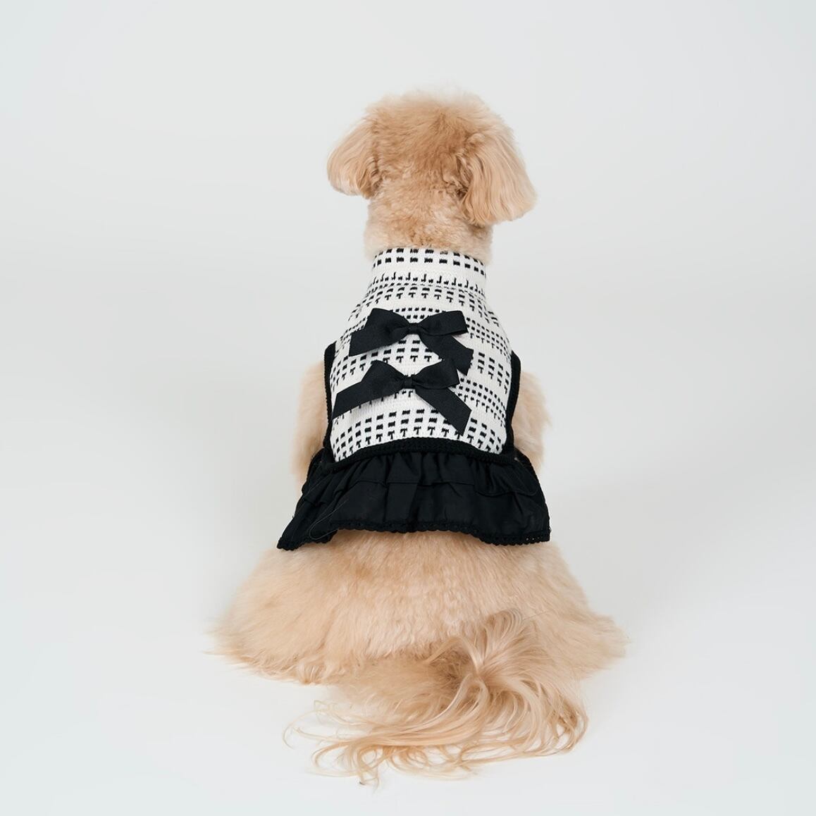 ユニークなパターンとシルエットが際立つデザインで、ブラックとアイボリーのモノトーン配色が洗練された雰囲気を演出します。
