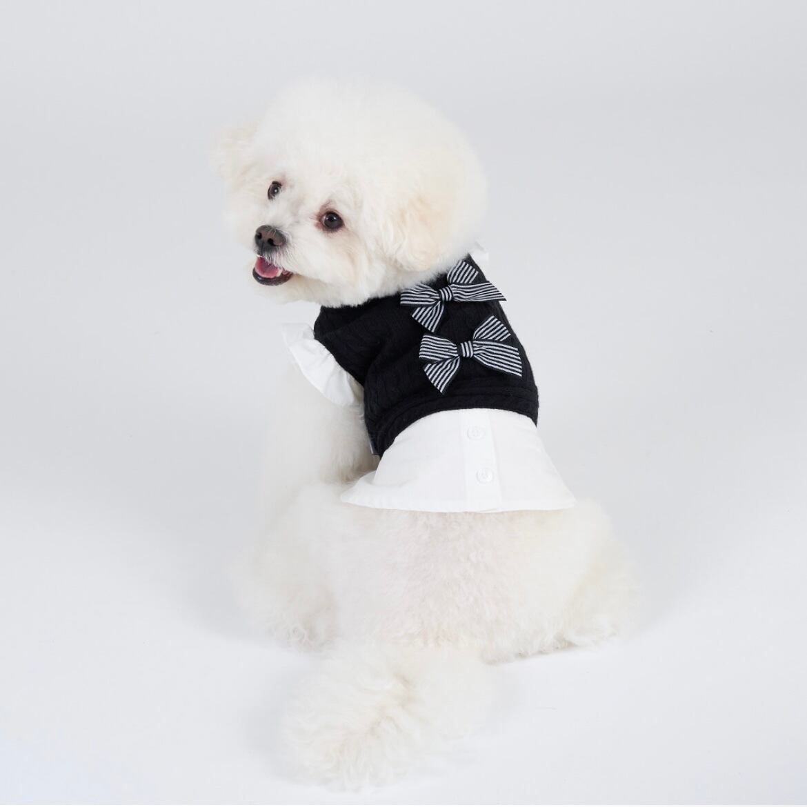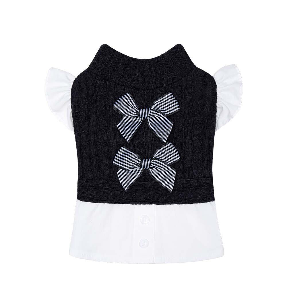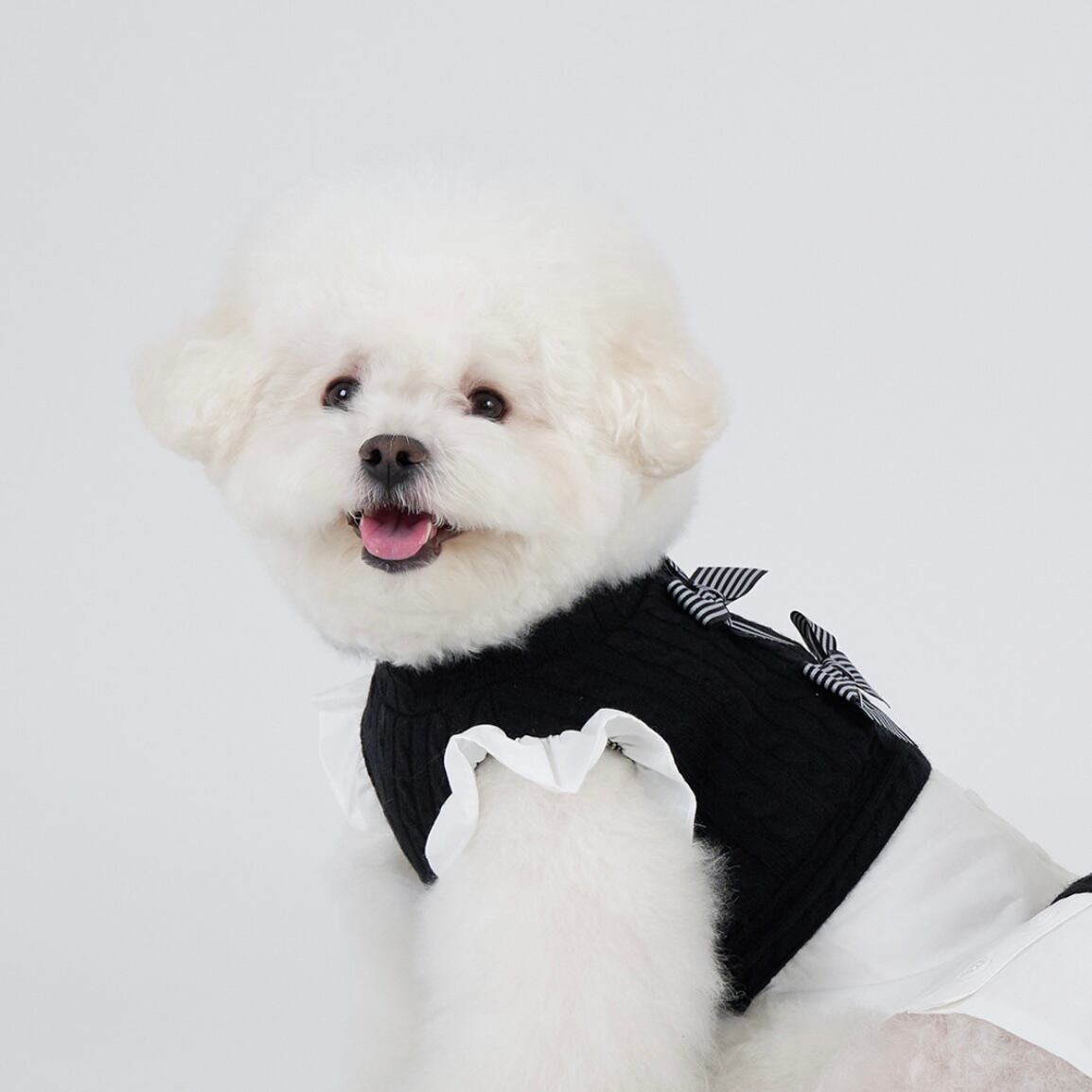 ケーブルニットとブラウスをレイヤードしたようなデザインで、きちんと感の中にラブリーなムードを込めたアイテムです。