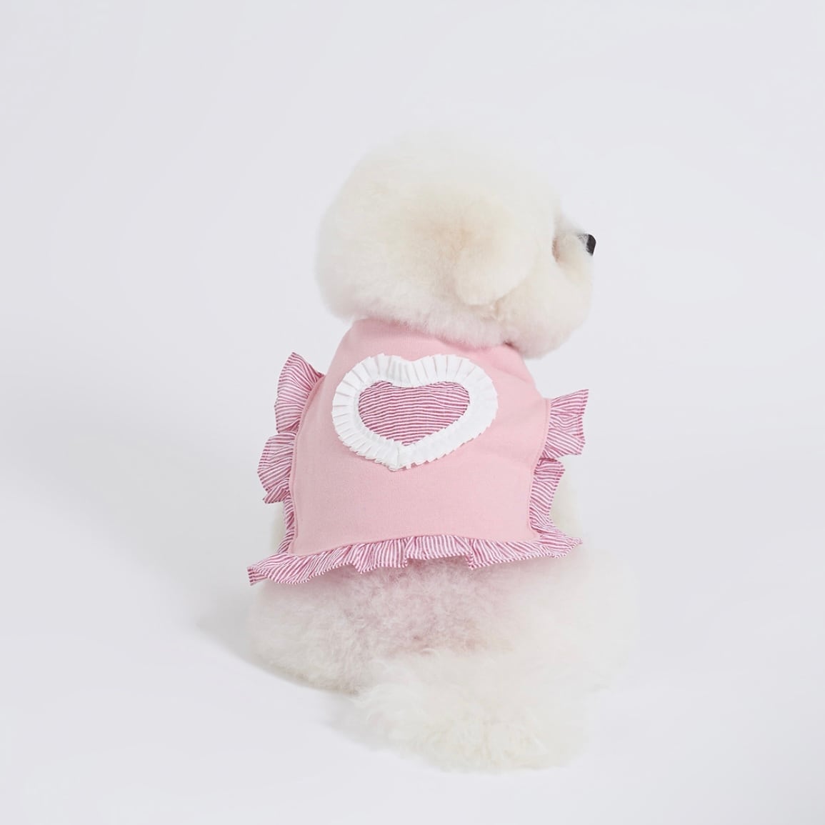 愛らしいフリルディテールとハートのポイントで完成された、どこでもひときわ目を引くスタイルを叶えてくれるケープです。