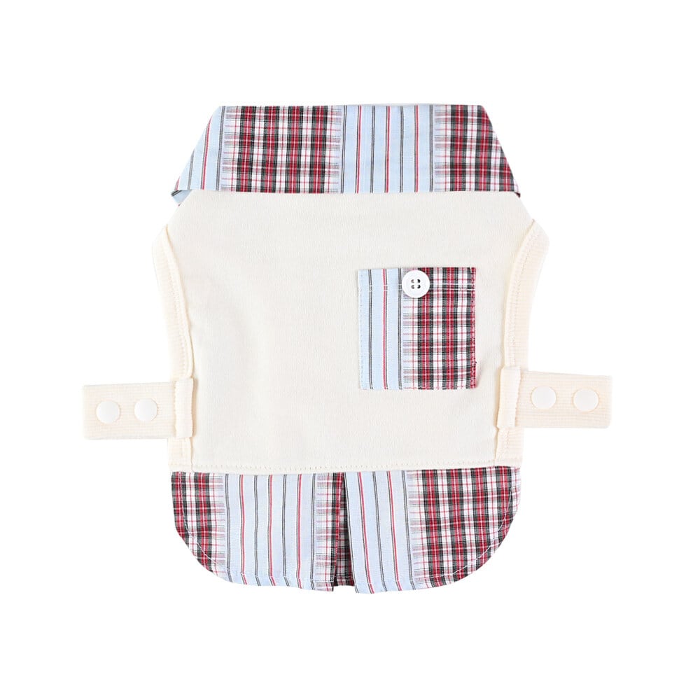 カラ―とボタンのディテールがすっきりとしたポイントになり、ストライプとチェック柄の組み合わせでクラシックな魅力をプラスしました。