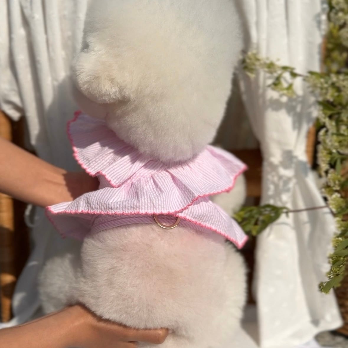 涼しげなシアサッカー素材と通気性の良いメッシュ裏地を使用した暑い日ににぴったりのハーネスです。