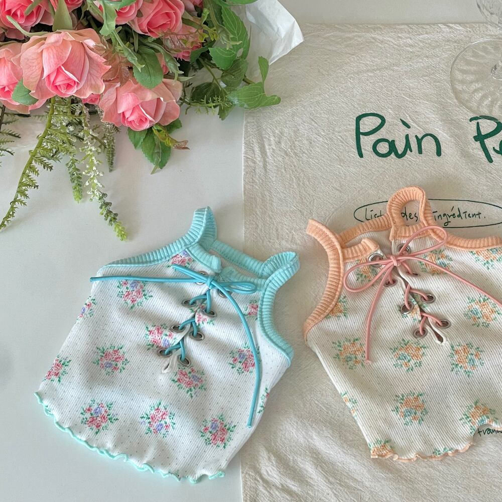 薄手のコットンリブ素材に、繊細な小花パターンをあしらったディテールたっぷりのサマートップです。