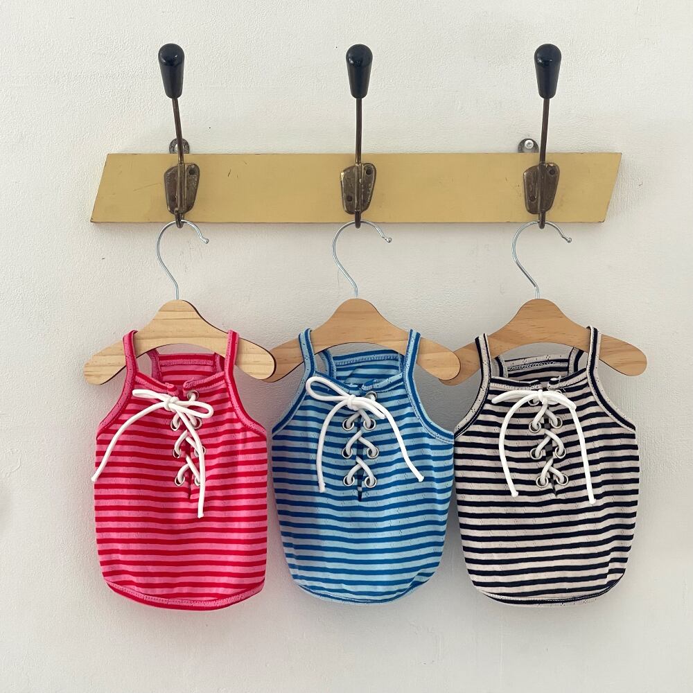 【即納】〔HUG ME〕Eyelet Striped Sleeveless Tee (全3色)