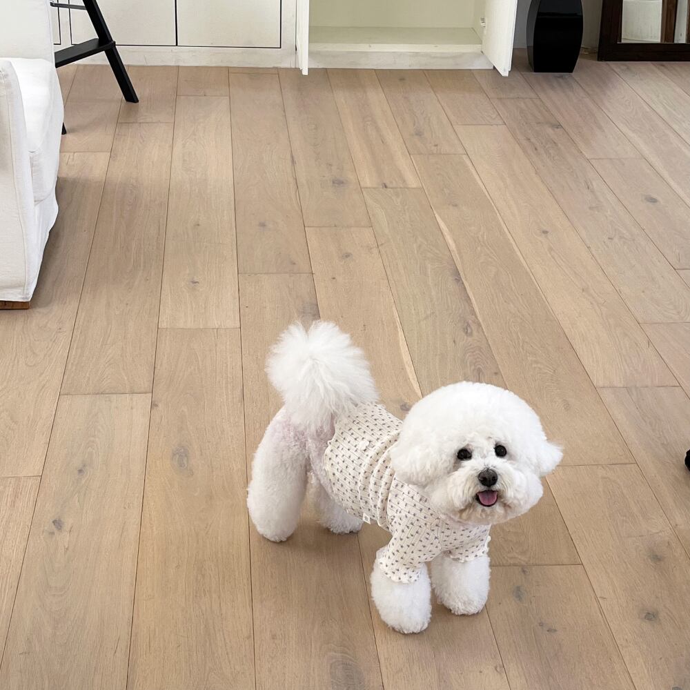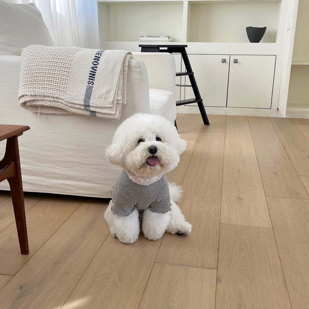 可愛いシルエットに柔らかい肌触りと伸縮性のある素材で毎日でも着せたくなる着心地です。