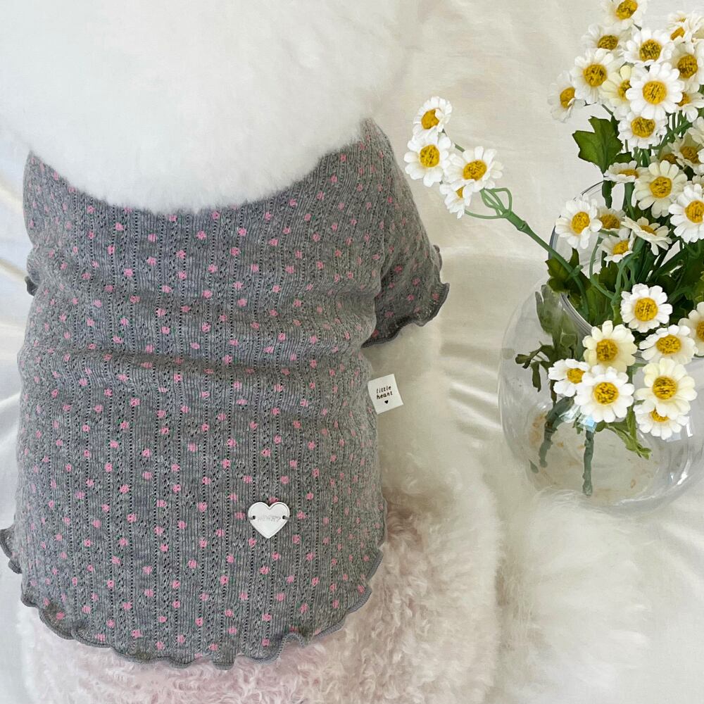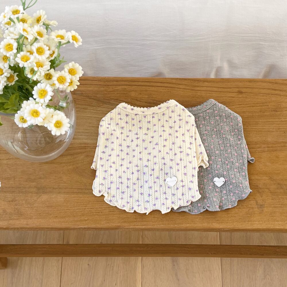 繊細なフラワーアイレット生地に可愛いハートラベルをプラスしたTシャツです。