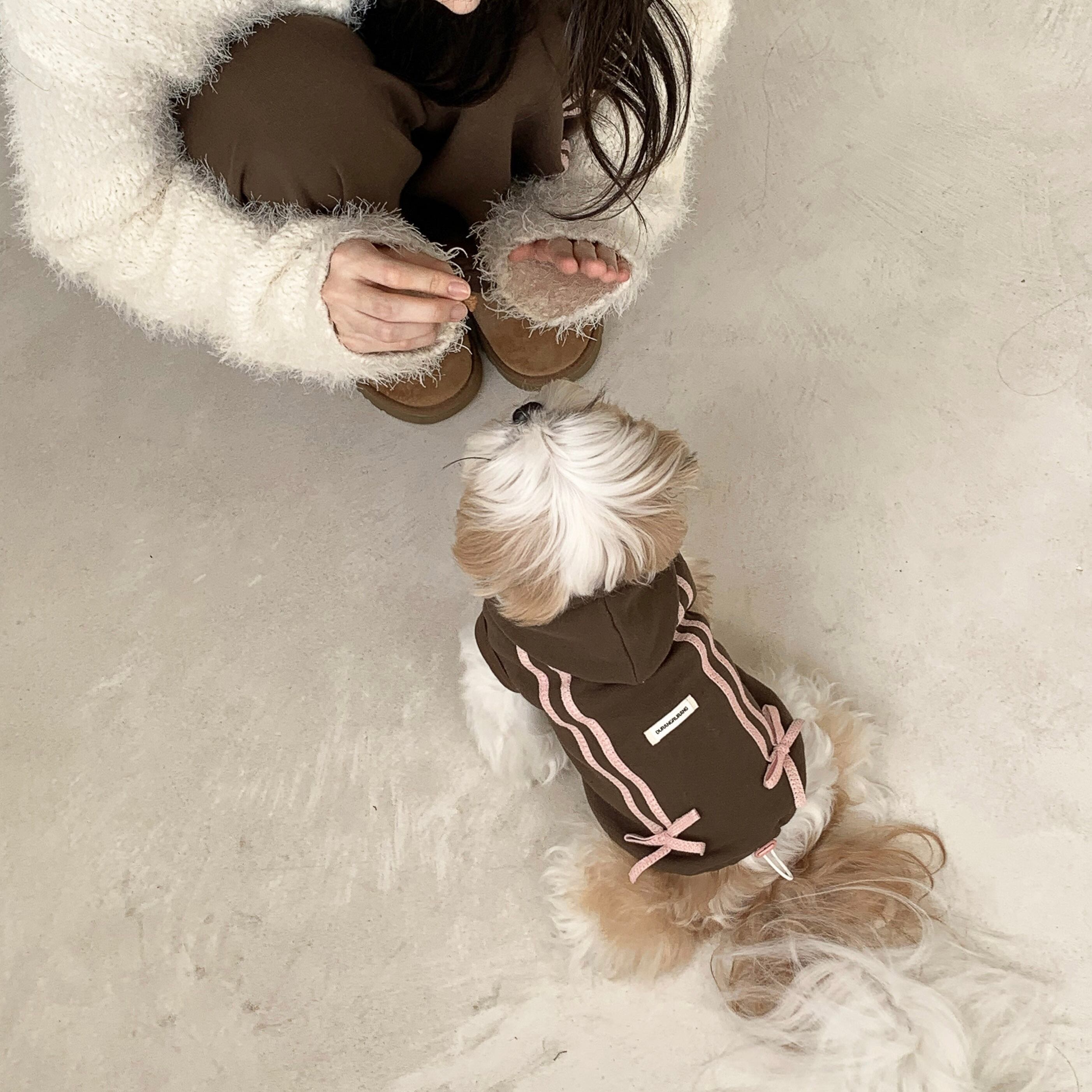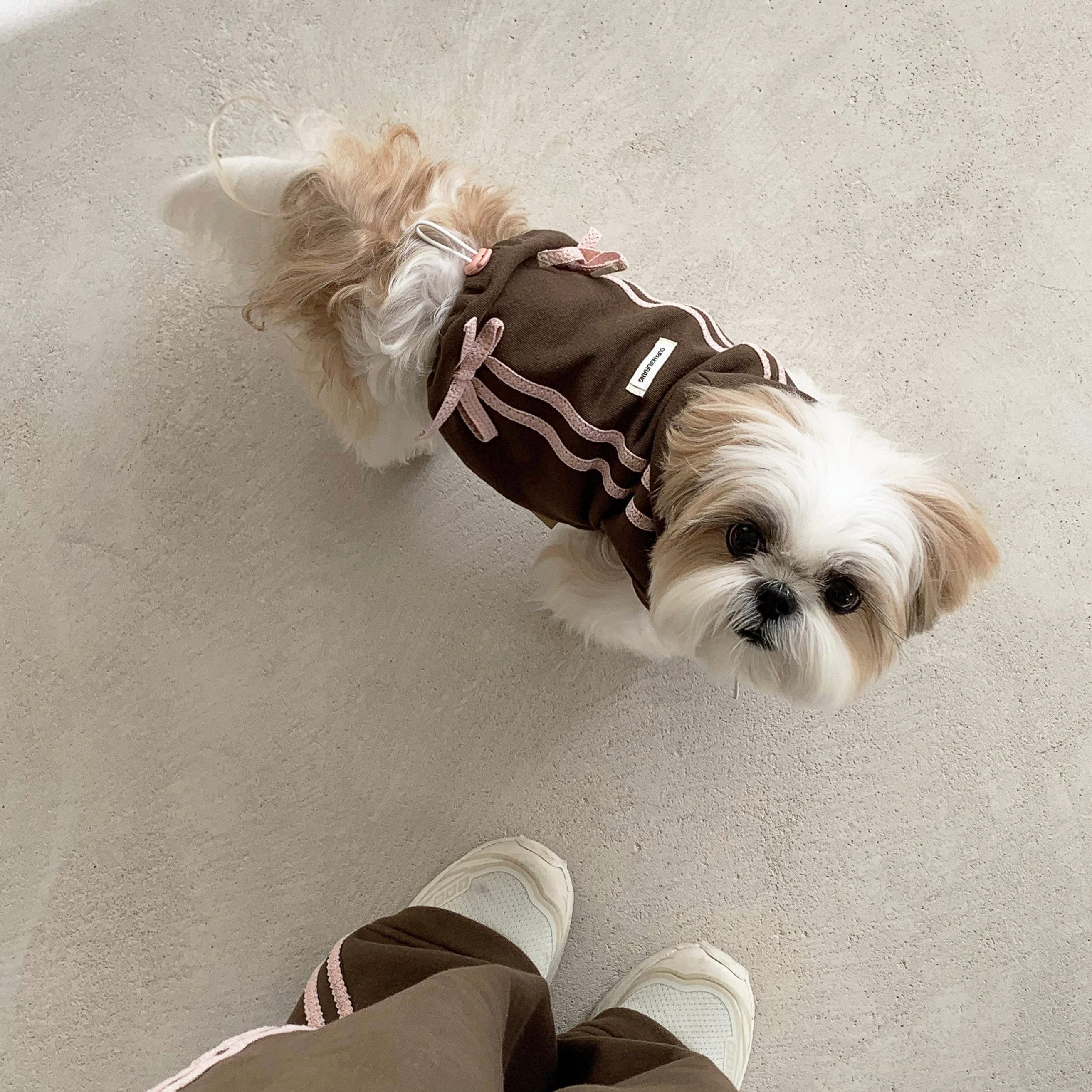 【予約】〔DURANG RURANG〕Ribbon Hoodie Jumper (CHOCO BROWN)
