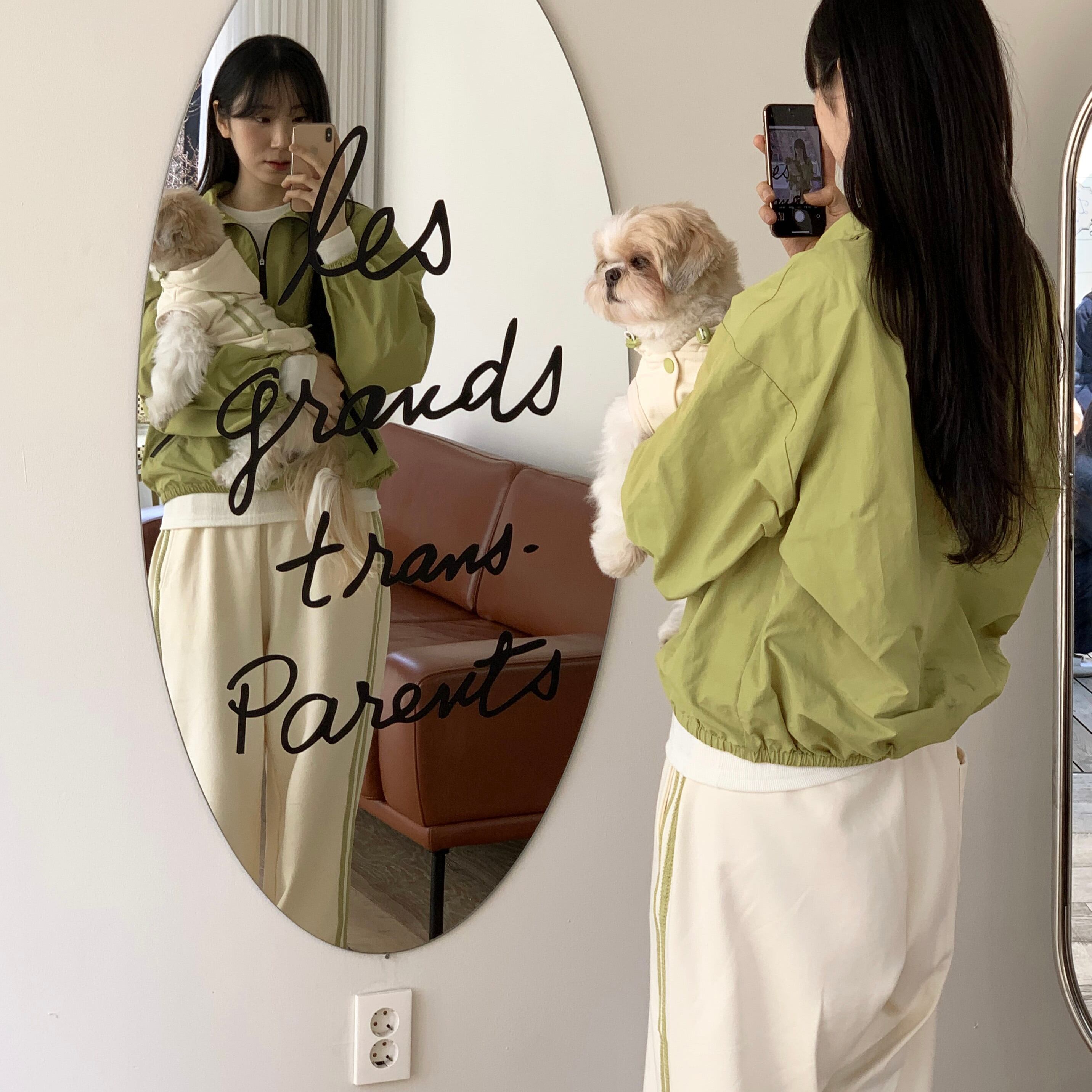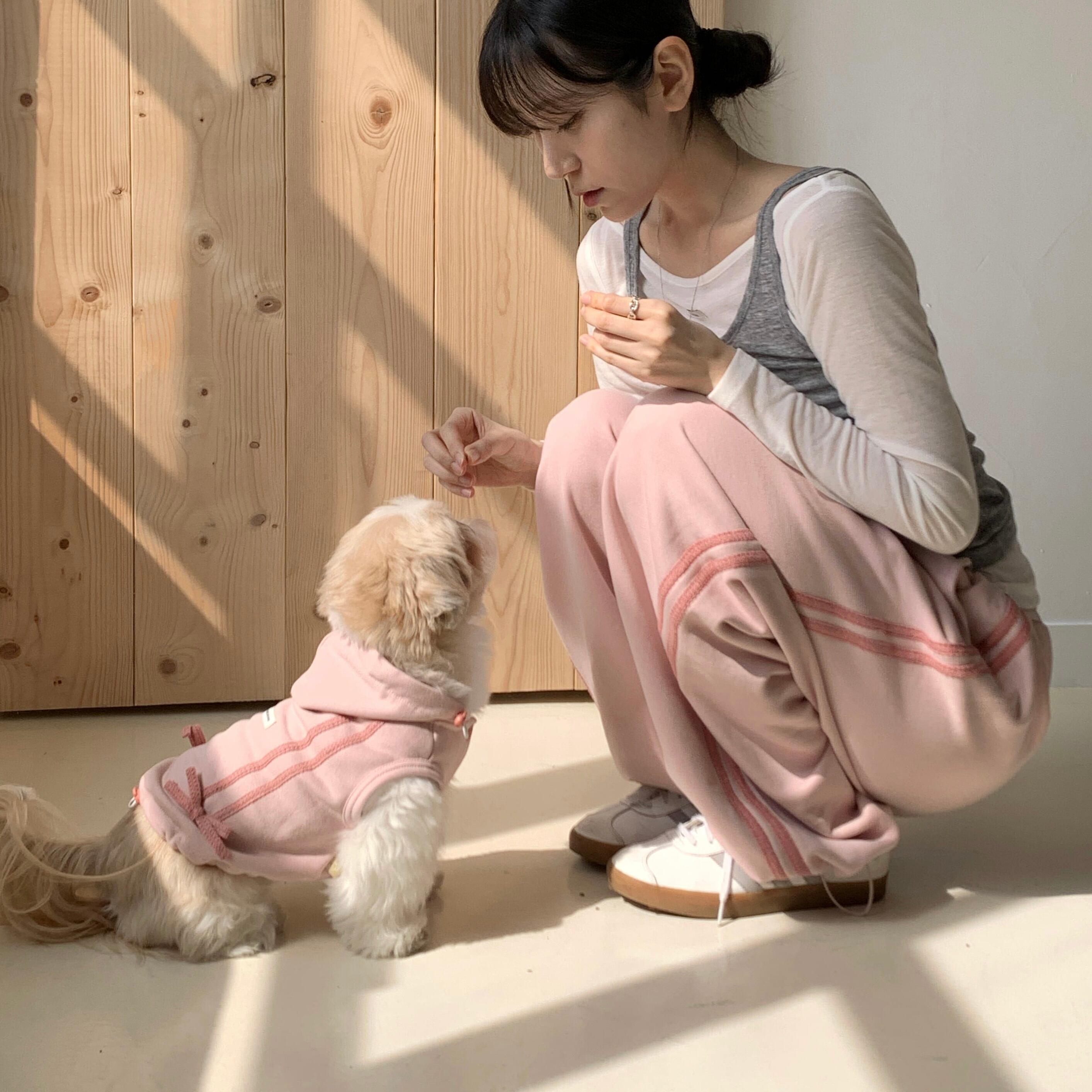 さりげなくワンちゃんとリンクコーデが楽しめる、ナチュラルで取り入れやすいジョガーパンツです。