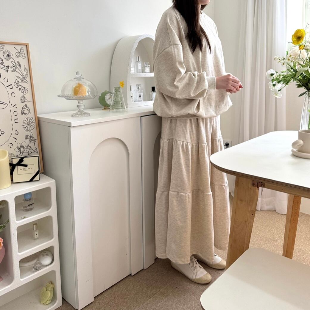 【即納】〔apple apple〕Kang Kang Two-Piece Casual Long Skirt Set (Oatmeal)