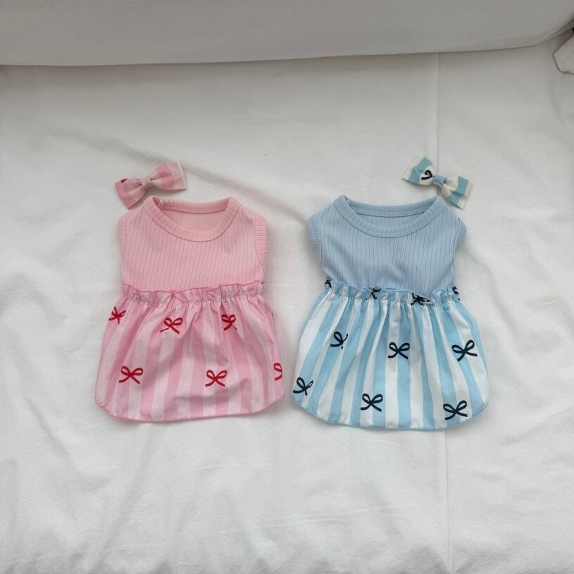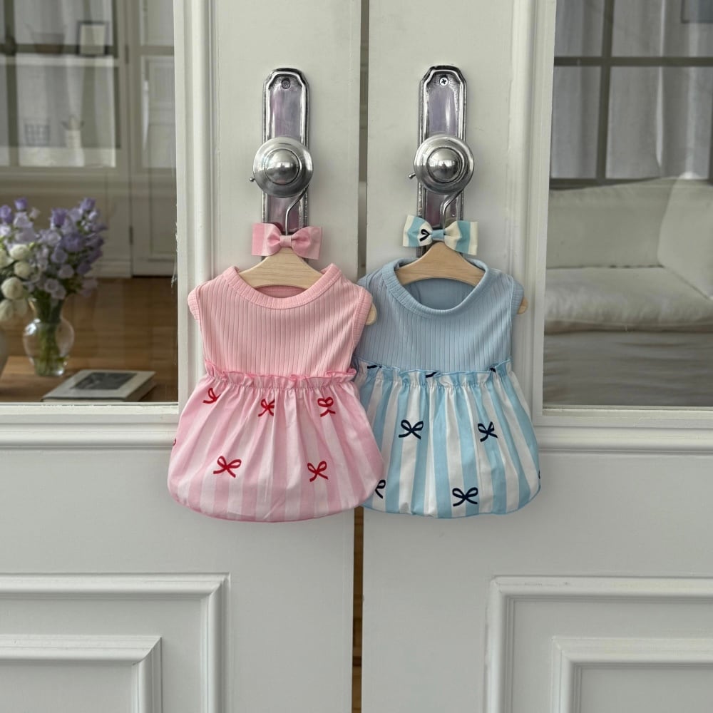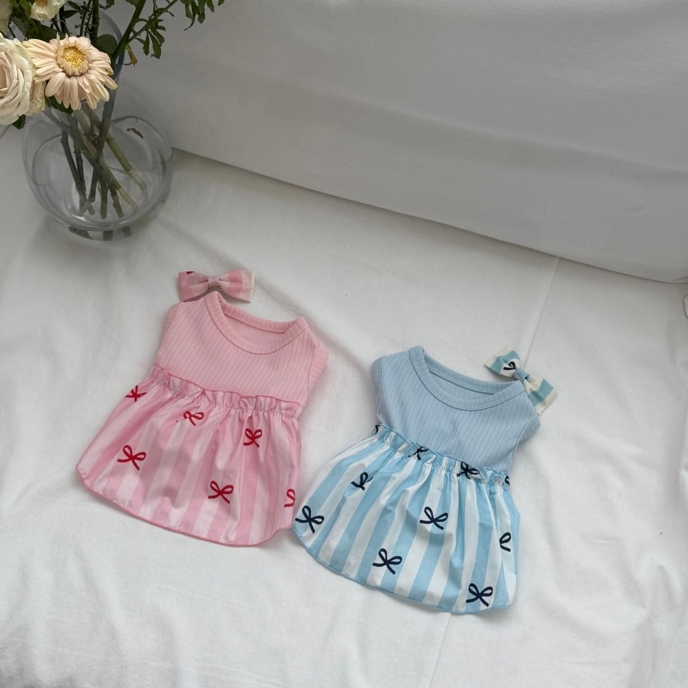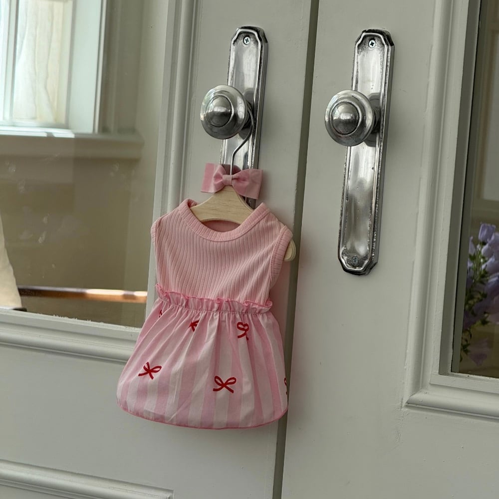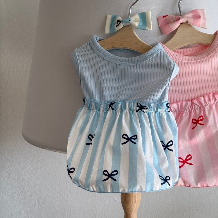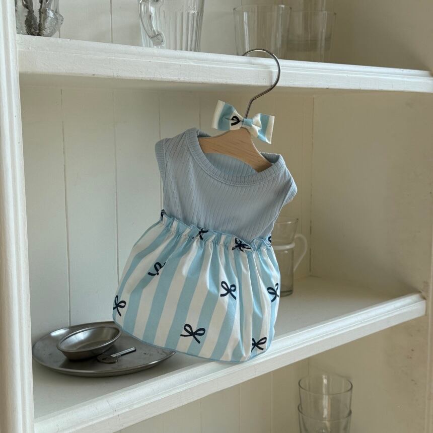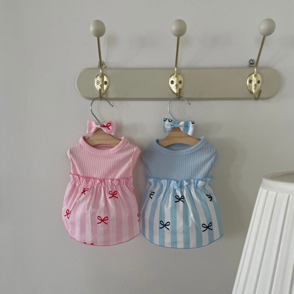 スカート部分は爽やかなストライプにリボンをプラスした、可愛らしさたっぷりのデザインです。