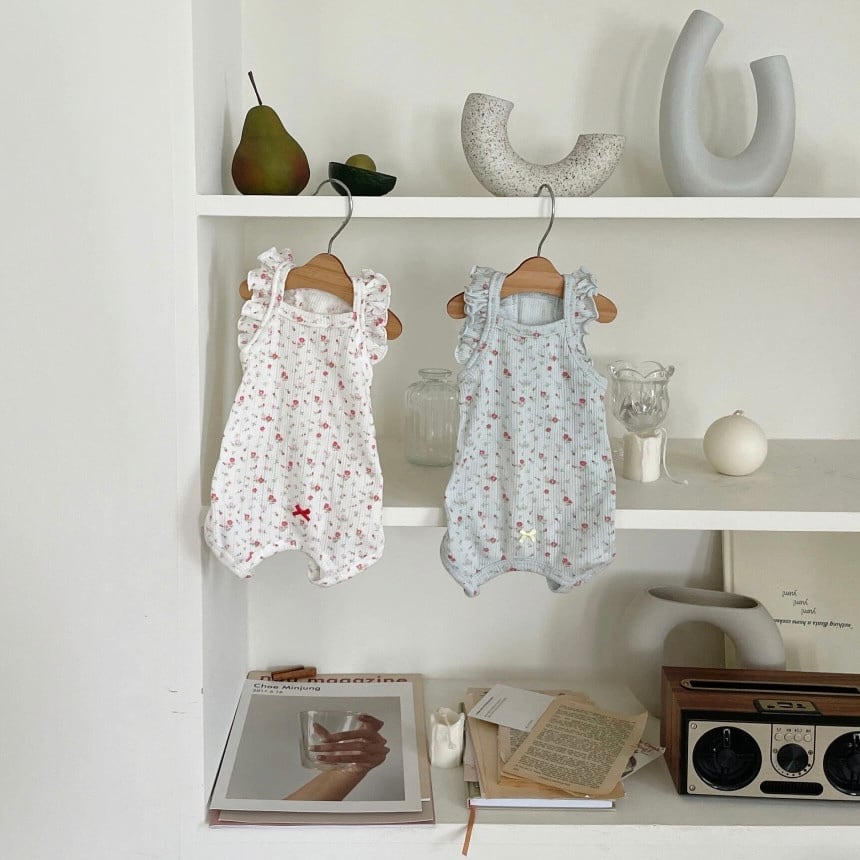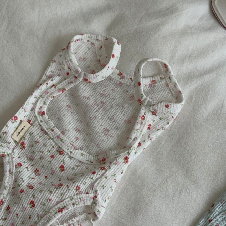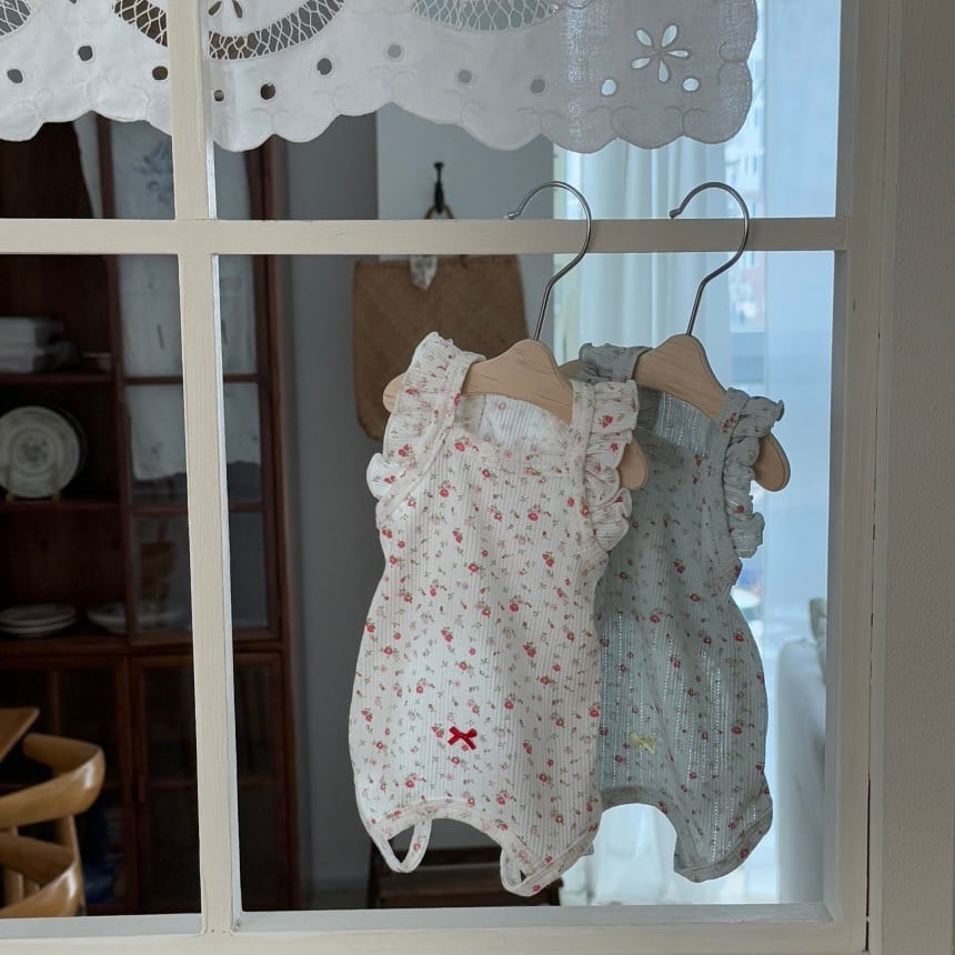 おうち時間にぴったりな、やさしい雰囲気のアイレットスーツです。
