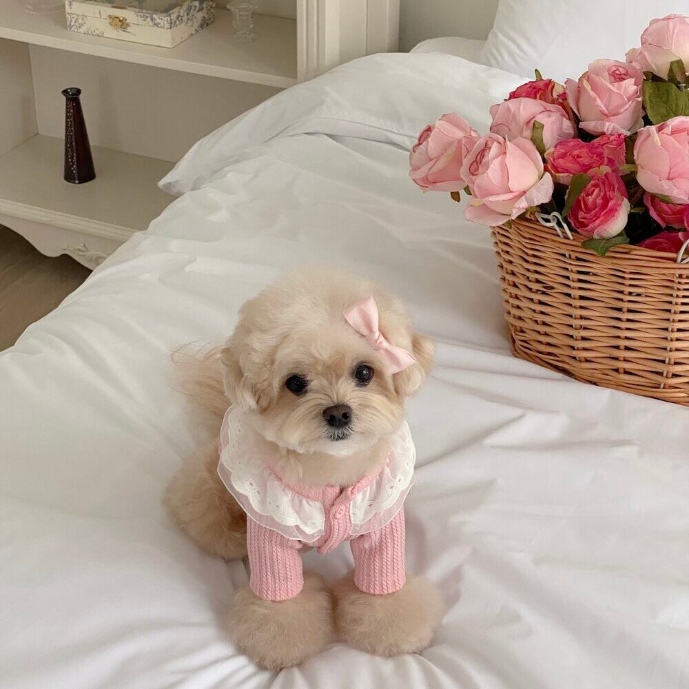 ほどよいミディアムトーンのピンクカラーで、どんな毛色のわんちゃんにも可愛く馴染む1枚です。