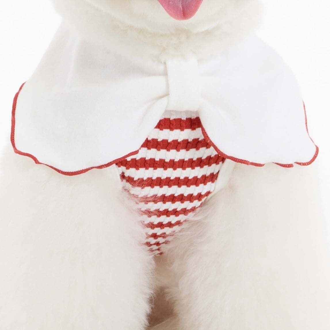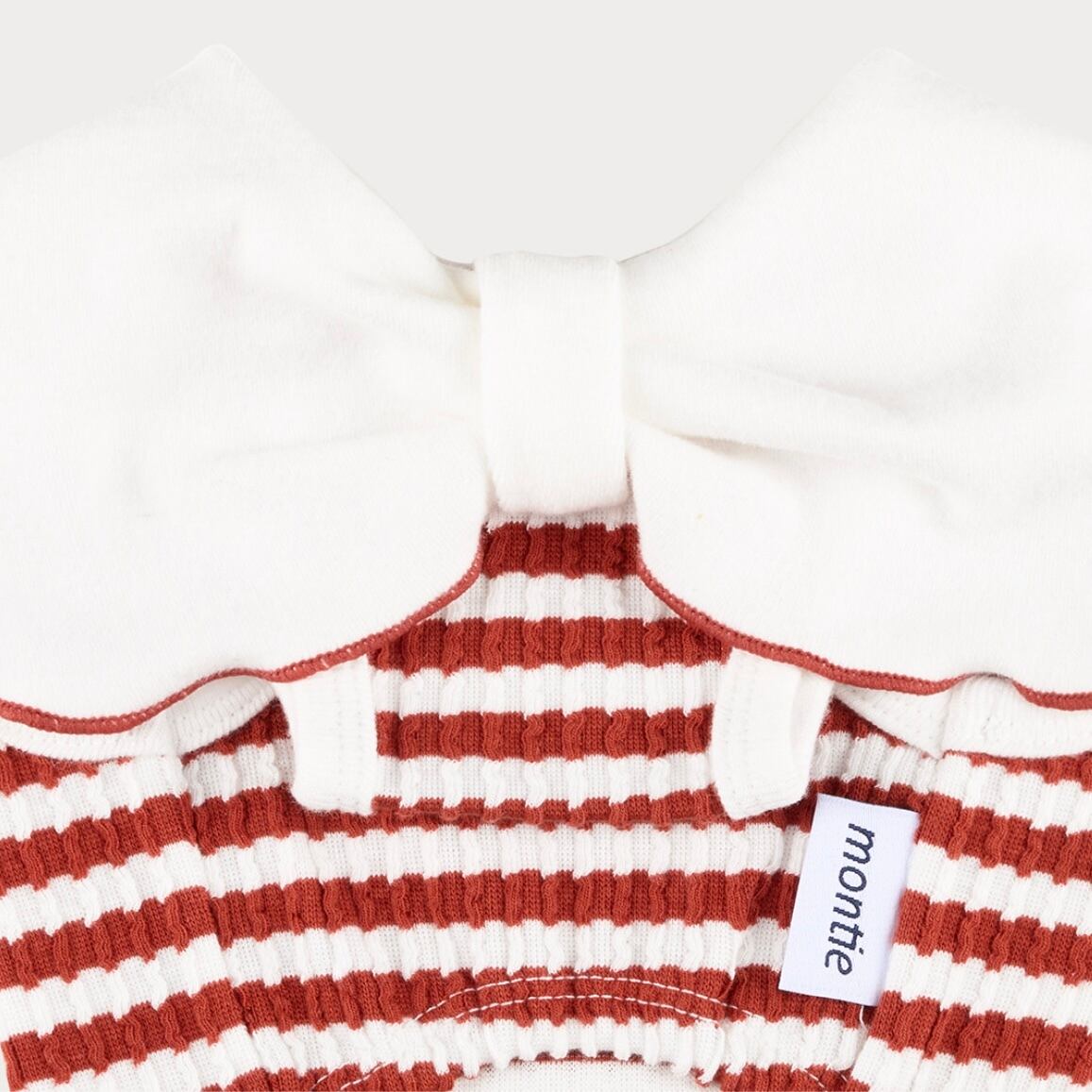 ユニークなリブ素材にストライプパターンを組み合わせ、やさしく愛らしい雰囲気をプラス。