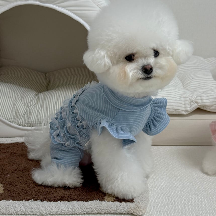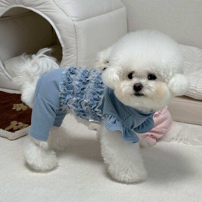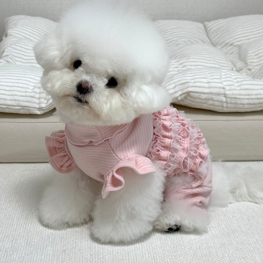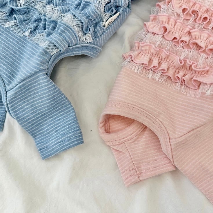 やさしいストライプ柄が魅力の、やわらかく程よい厚みのあるオールインワンです。