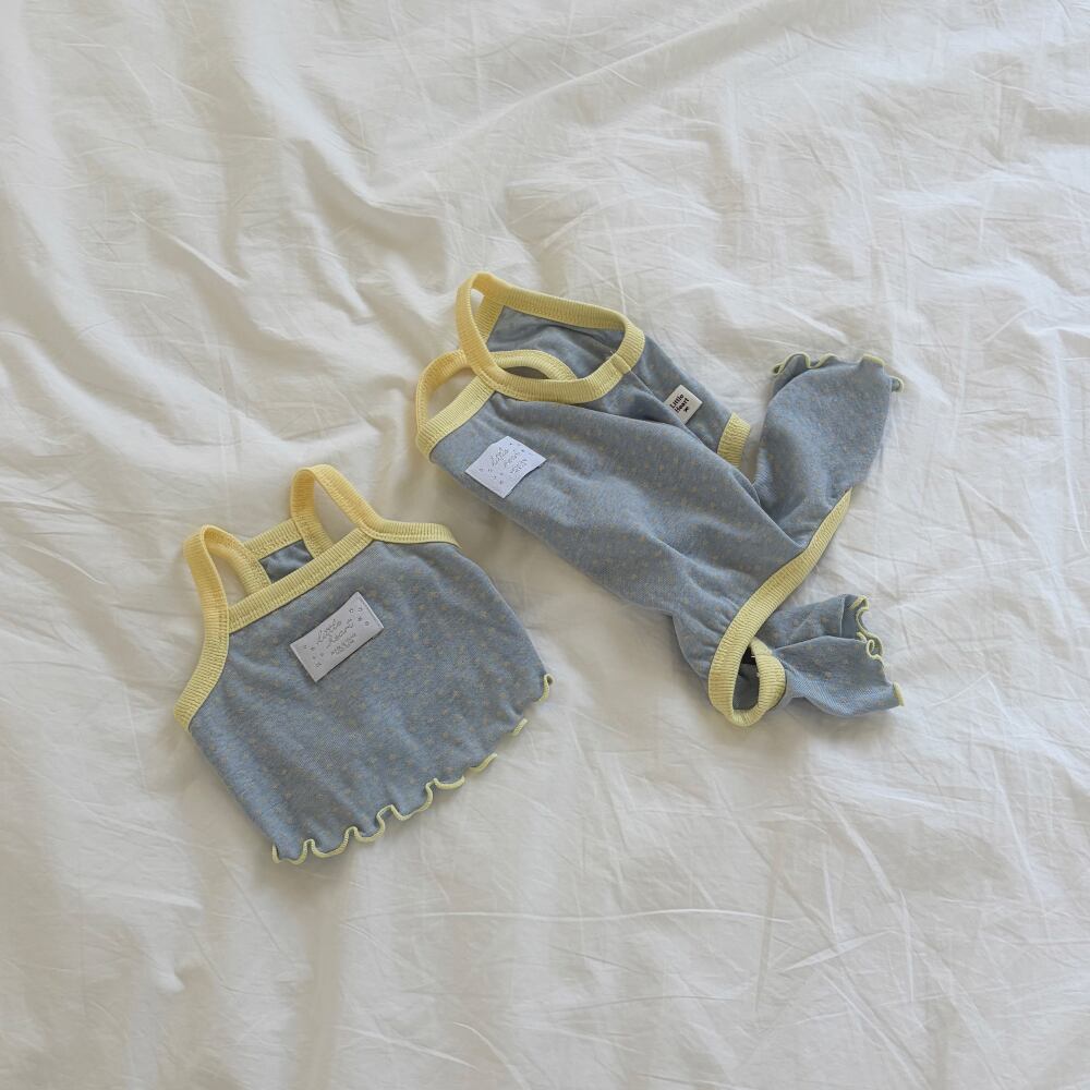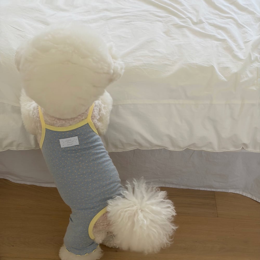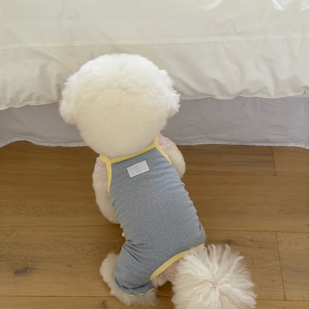 可愛らしいコンペイトウ柄に、きらりと輝くシルバーラベルをプラスした爽やかなオールインワンです。