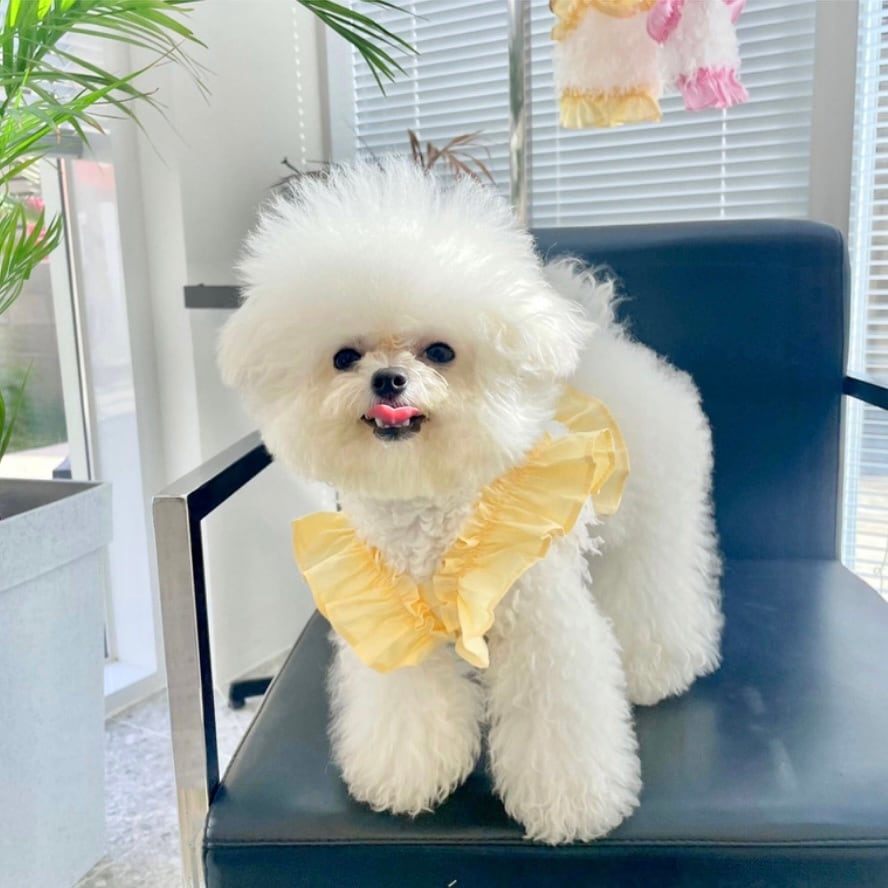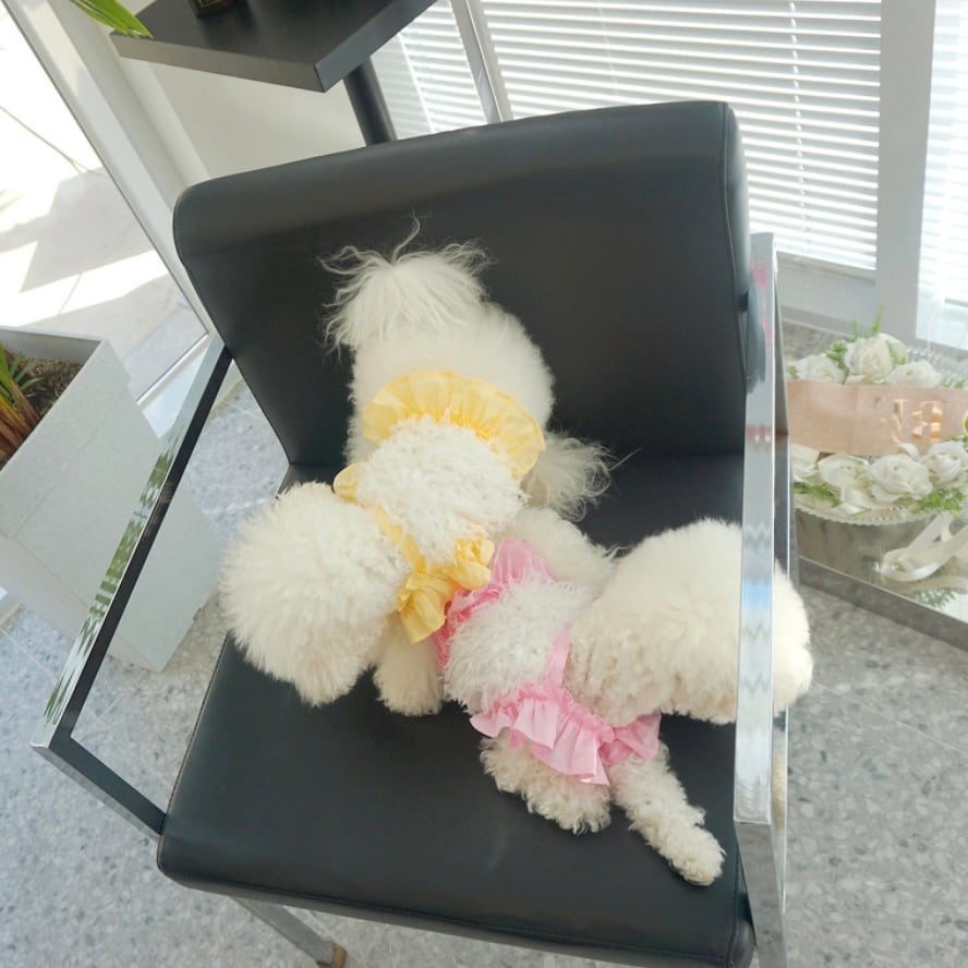 ふわっとした羽のような生地に愛らしいフリルを重ねた、まるでお花のようなビスチェです。