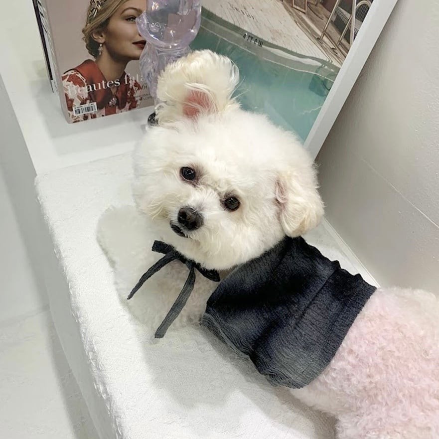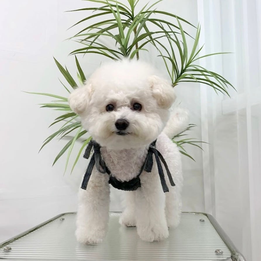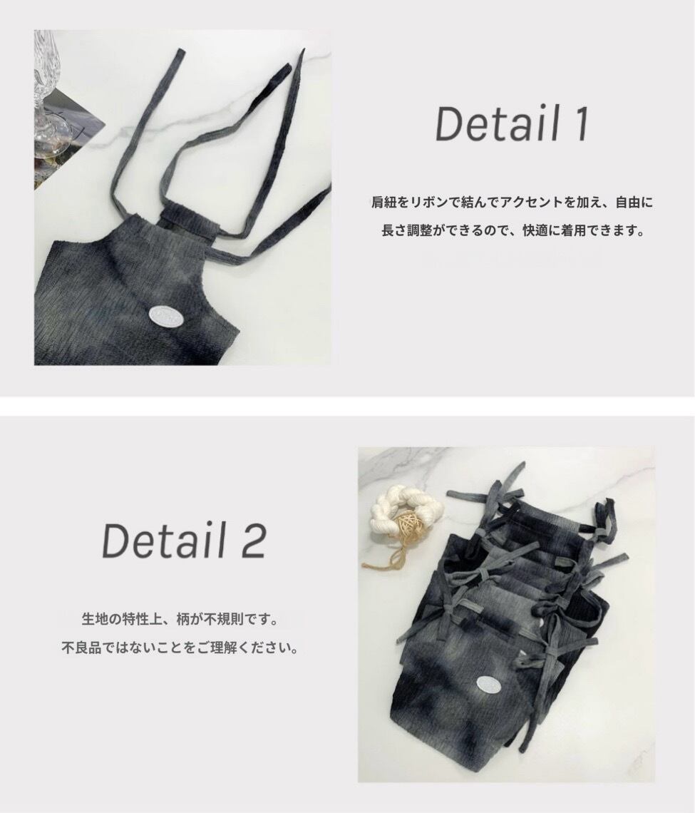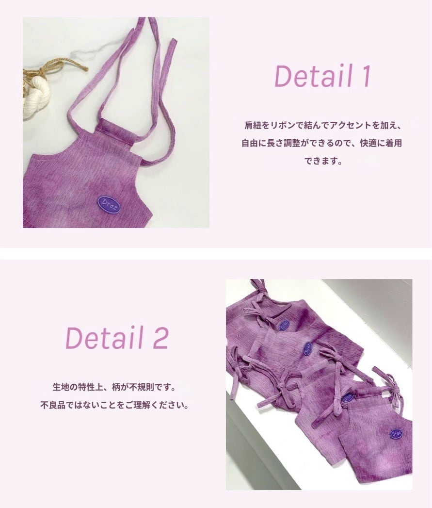 肩紐はリボンで結んで長さ調節ができる仕様で、着せやすく脱がせやすいのも嬉しいポイントです。