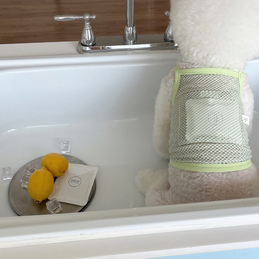 通気性の良いメッシュ素材で、さらっと涼しい着心地に。