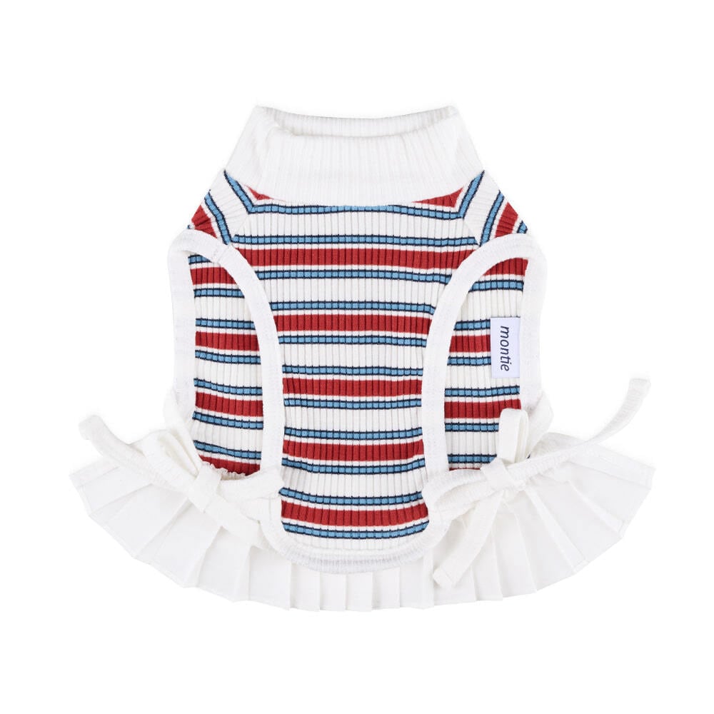 プレッピーなムードを取り入れた、ストライプ×プリーツデザインのワンピースです。