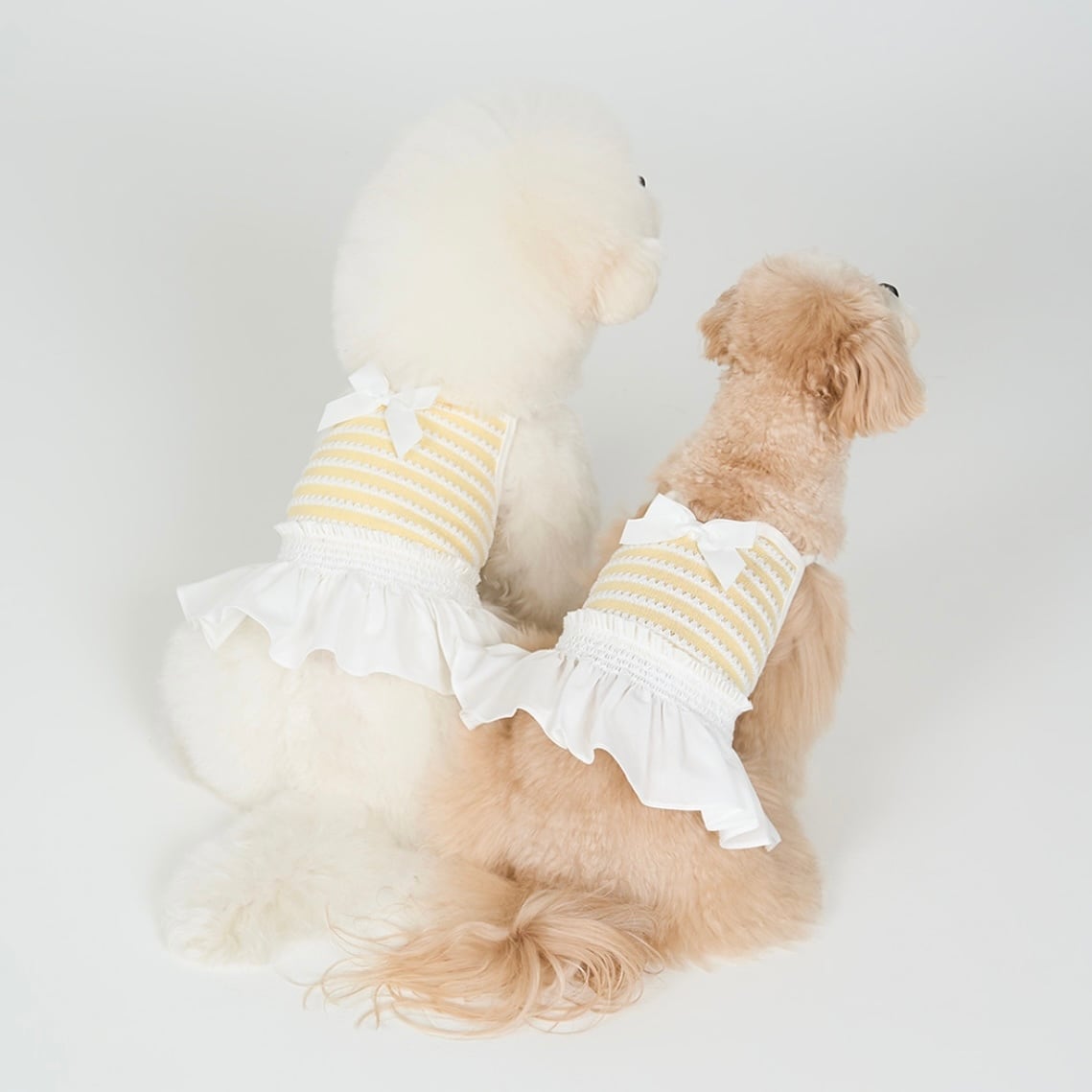 リボンディテールとふんわり広がるスカートラインが、やさしく可愛らしいシルエットを作り出します。