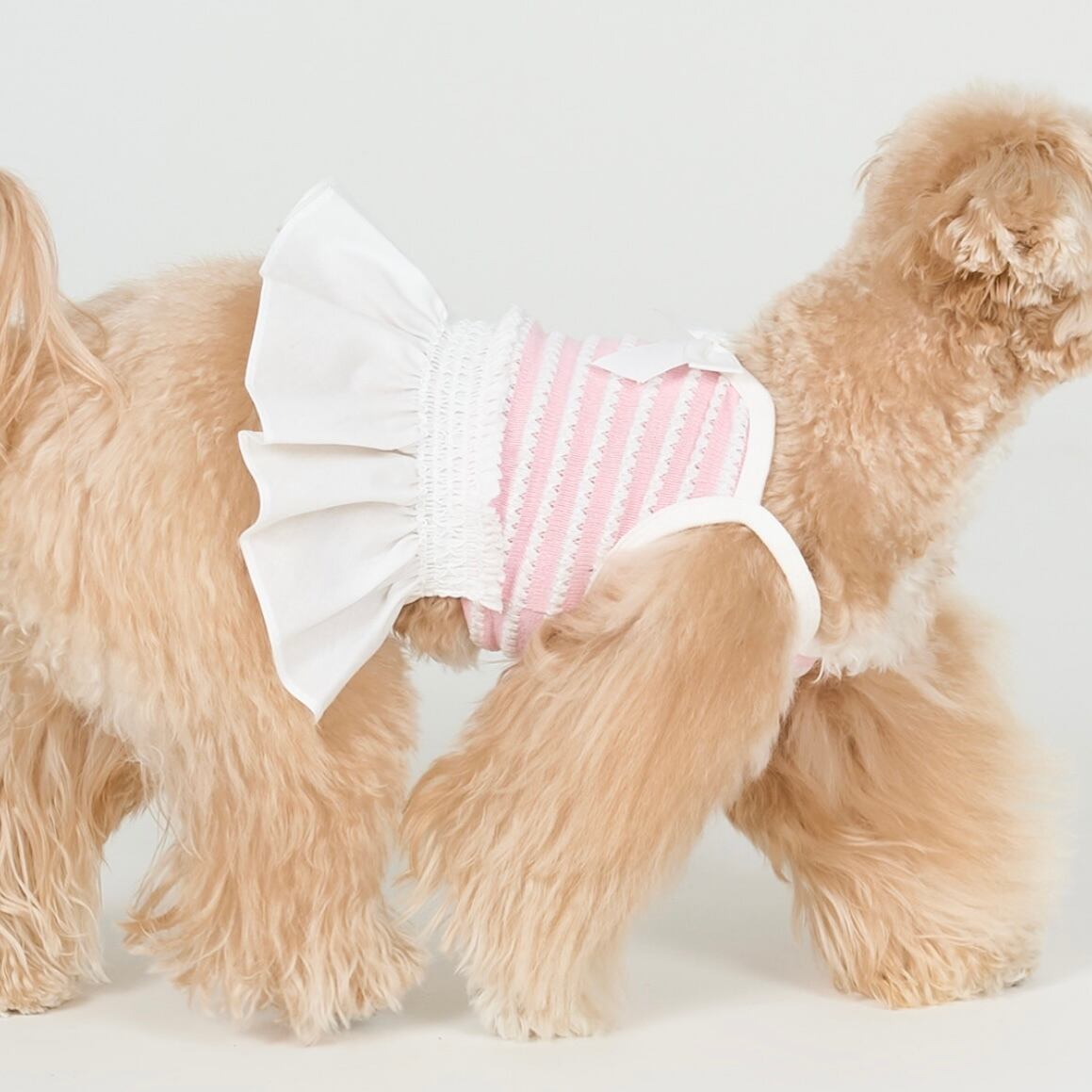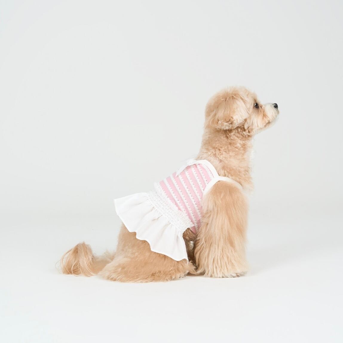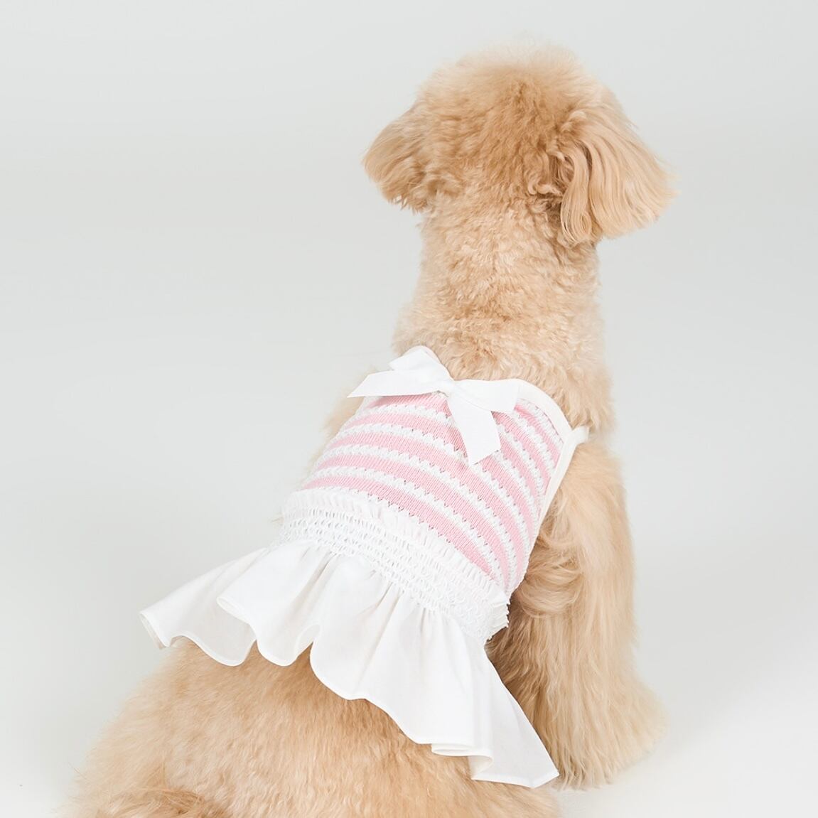 リボンディテールとふんわり広がるスカートラインが、やさしく可愛らしいシルエットを作り出します。