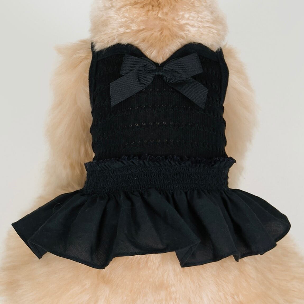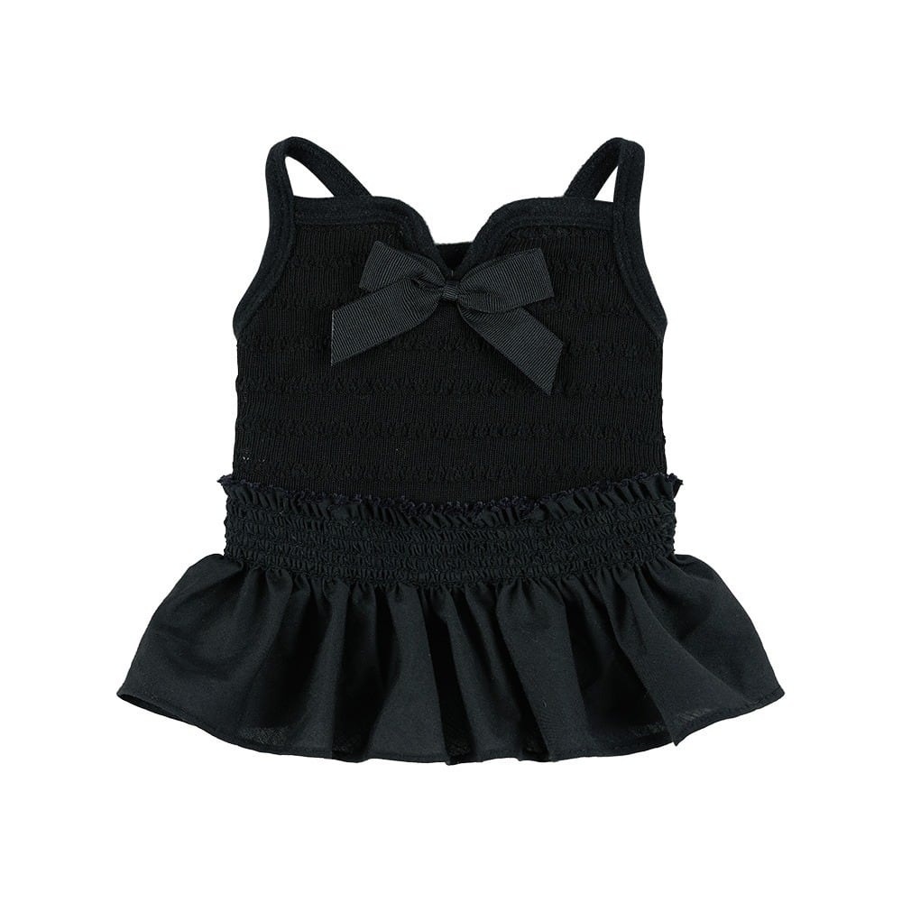リボンディテールとふんわり広がるスカートラインが、やさしく可愛らしいシルエットを作り出します。